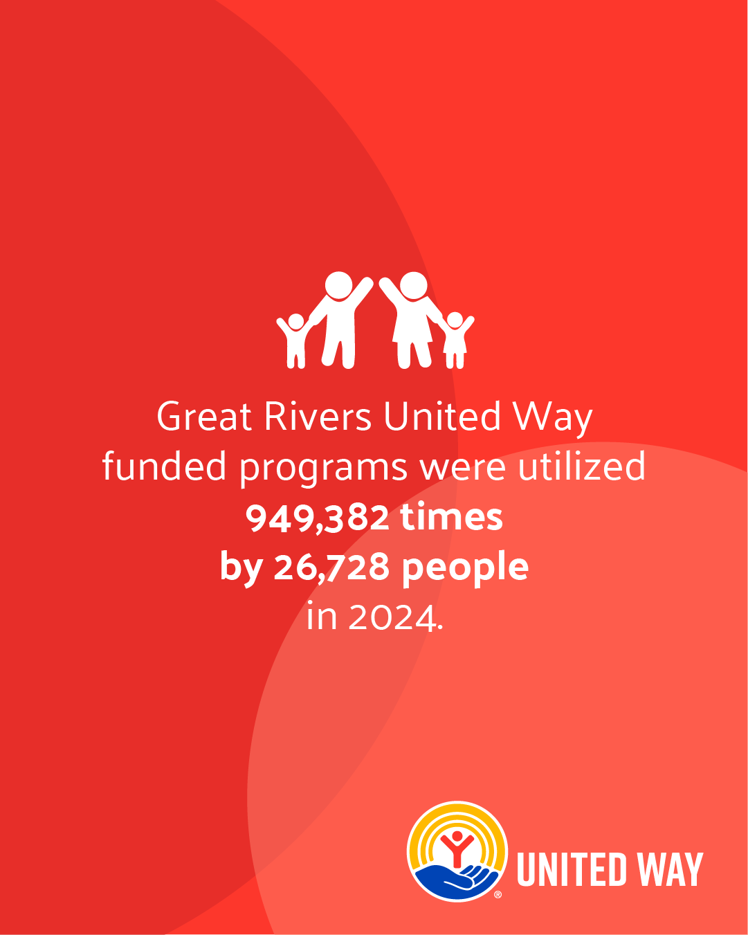 A single gift to Great Rivers United Way helps thousands. In 2024, 26,728 local people accessed United Way funded programs 949,382 times.