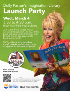 Dolly Parton’s Imagination Library is a book gifting program that mails free, high-quality books to children from birth until age five, no matter their family’s income. Great Rivers United Way is proud to bring this early literacy program to children living in select counties in Crawford, Grant, and Jackson counties.